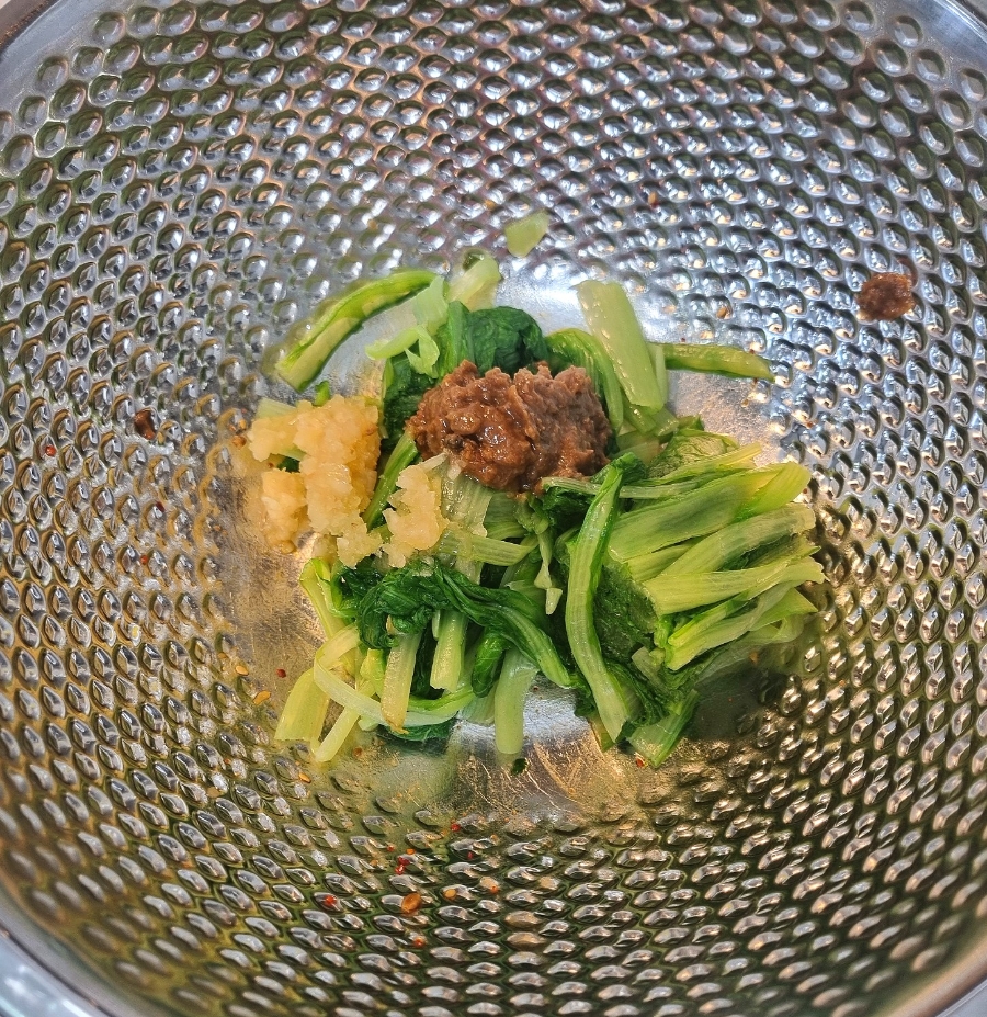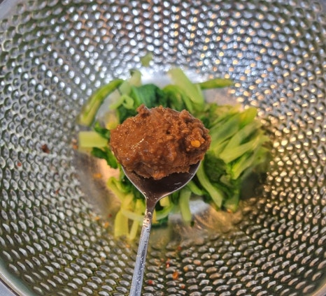 데친 얼갈이배추에 된장 2큰술,