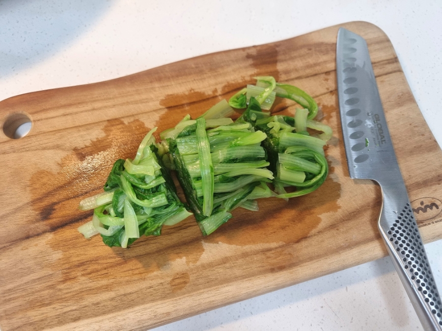 데친 얼갈이배추는 3등분으로