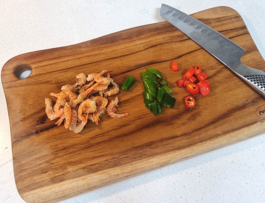 건새우, 홍고추, 청고추 넣고
