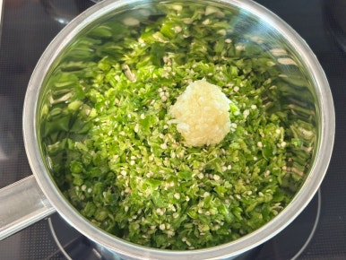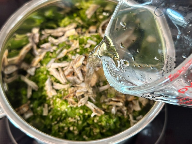 냄비에 작게 다져준 청양고추를 모두 넣고