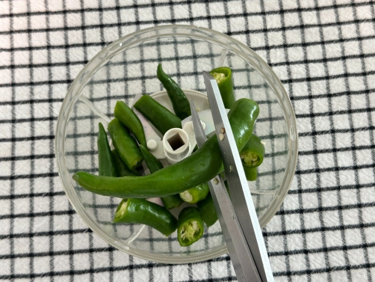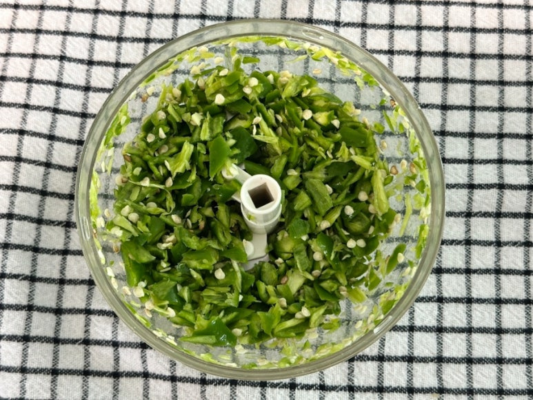 청양고추를 넣고 작게 잘 다져주세요