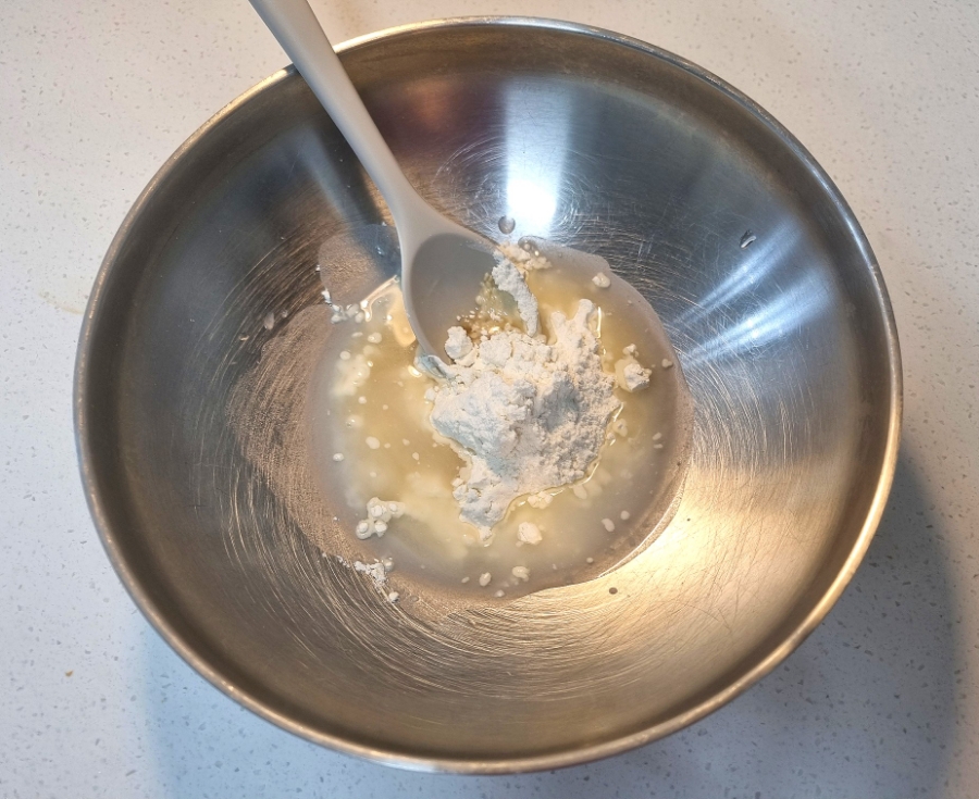 부침가루 3큰술에 물은 1.5배 넣어줬어요