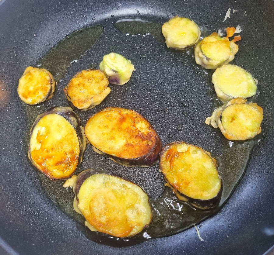 앞뒤 노릇하게 구워지면 건져내면 돼요
