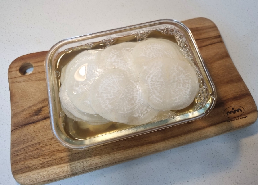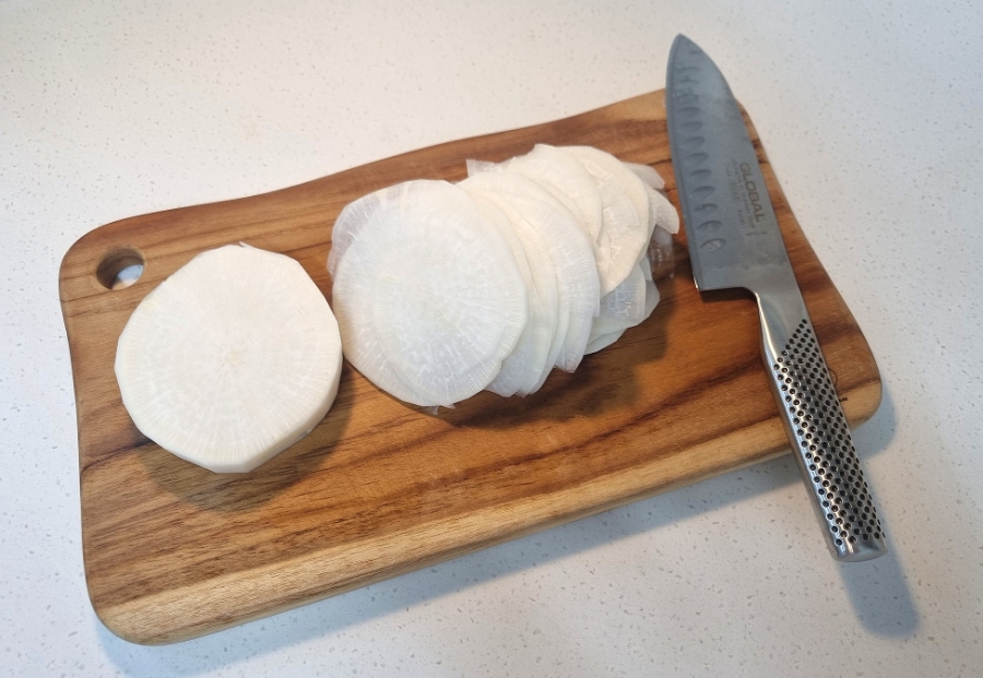 쌈무용 무는 채칼로 얇게 썰어도 좋고