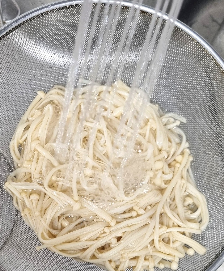 찬물에 헹궈 물기를 꼬옥 짜주세요