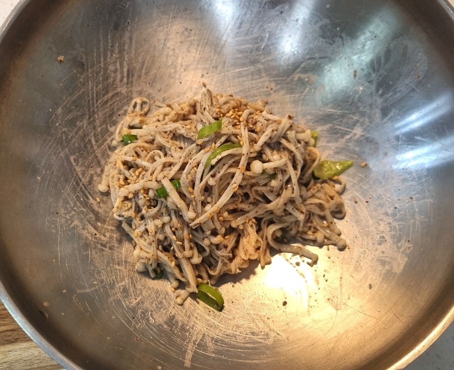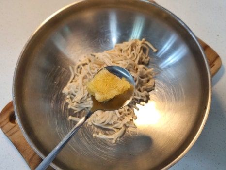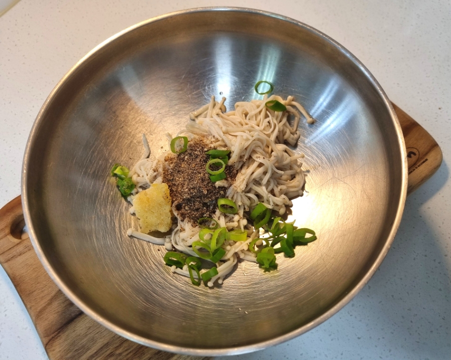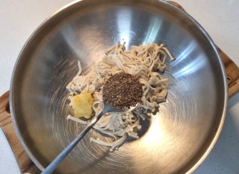 팽이버섯무침 양념은 다진마늘 1큰술,