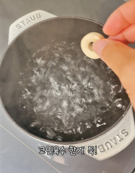 이 때 멸치나 다시팩이 있다면 넣으셔도 됩니다 코인육수는 정말 간편함을 위해서 사용하는거지만 멸치나 다시팩을 대체해도 먹어봤을 때 잘 모를정도로 잘 만든거같아요 삶의 질을 올려주는 코인육수 짱짱!!