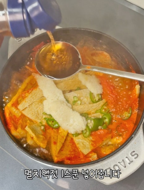 저는 이 요리 한정으로 신맛이 좀 느껴져야 속이 뻥 뚫리는 듯한 느낌이 들더라구요! 멸치액젓이 들어가서 그런지 감칠맛이 확 올라와서 소금을 넣지 않아도 충분히 간이 맞더라구요