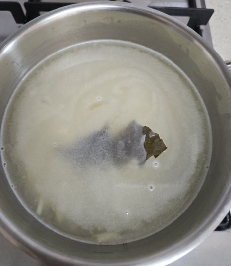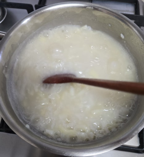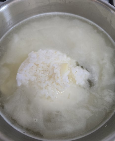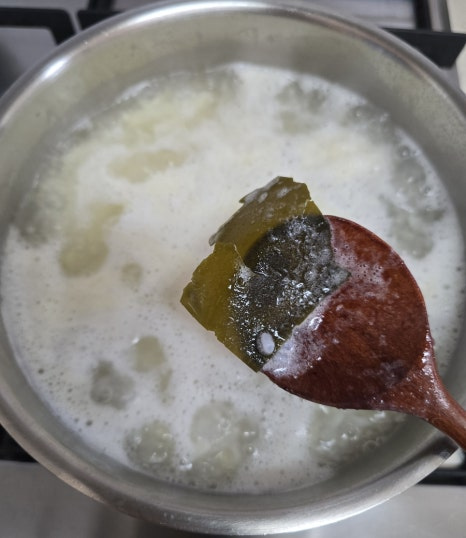 - 감자 2개 밥 한 공기 다시마 2~3조각 물 500ml 참치 액 1 통깨 약간 참기름 0.5 , 계량 : 밥숟가락 계량컵