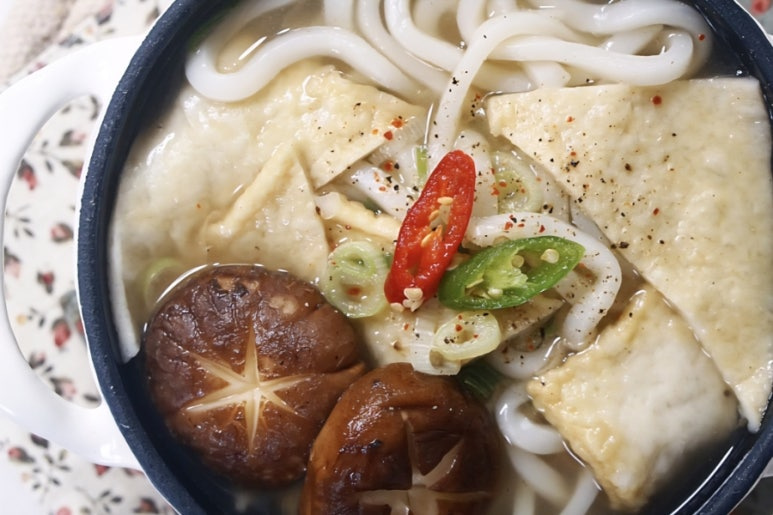 쫄깃한 우동사리와 부드럽고 짭쪼름한 어묵이 어우러진 맑은 우동 한그릇은 복잡한 조리법 없이도 든든하고 간편하게 한 끼를 해결할 수 있게 해주는 따뜻한 메뉴입니다. 별다른 조미료 없이도 깊은 국물 맛을 낼 수 있고 어묵의 감칠맛이 자연스럽게 우러나 국물이 훨씬 풍부해지는 장점도 있는 담백 고소한 국물 요리! 추운 날씨에 한그릇 후루룩 먹고 나면 온몸이 따뜻해지는 어묵우동, 손쉽게 만드는 법 소개해 드릴게요 '◡'