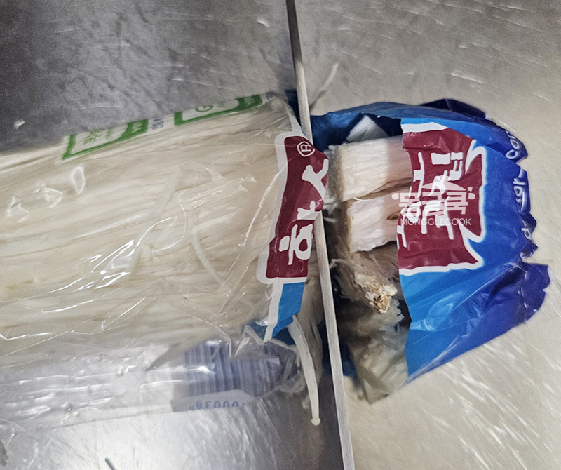 사진처럼 두꺼운 밑동 부분은 제거하고 버섯 사이 남은 균사체는 손으로 가볍게 떼어내주세요.