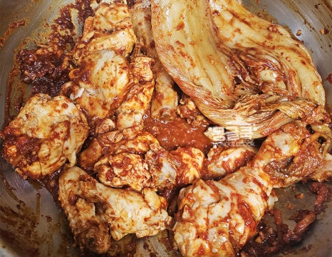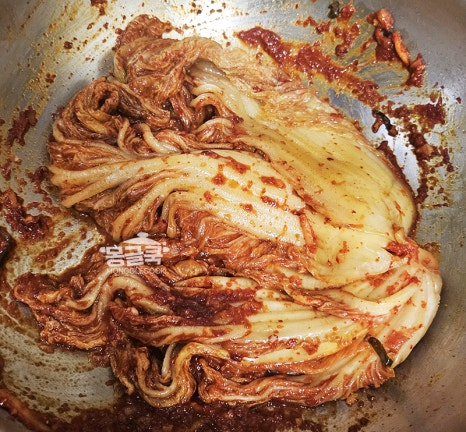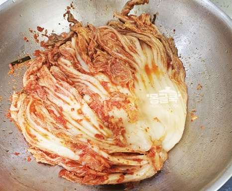 이 과정에서 양념이 배면서 깊고 진한 김치향이 우러나요.