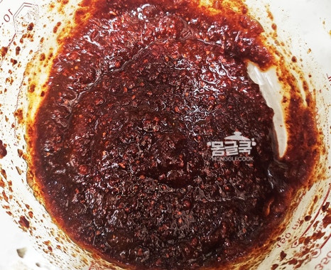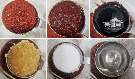 고춧가루 2.5큰술, 고추장 1큰술, 진간장 3큰술, 설탕 1큰술