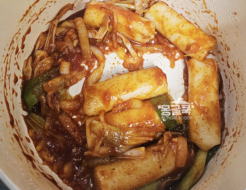 떡에 양념이 촉촉하게 코팅되면서 색이 진~하게 변할 거예요.