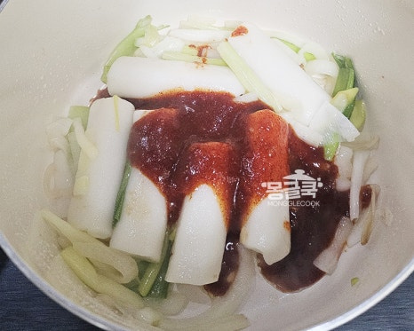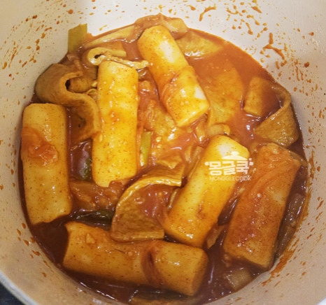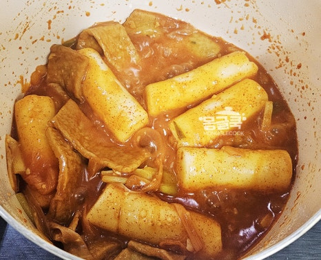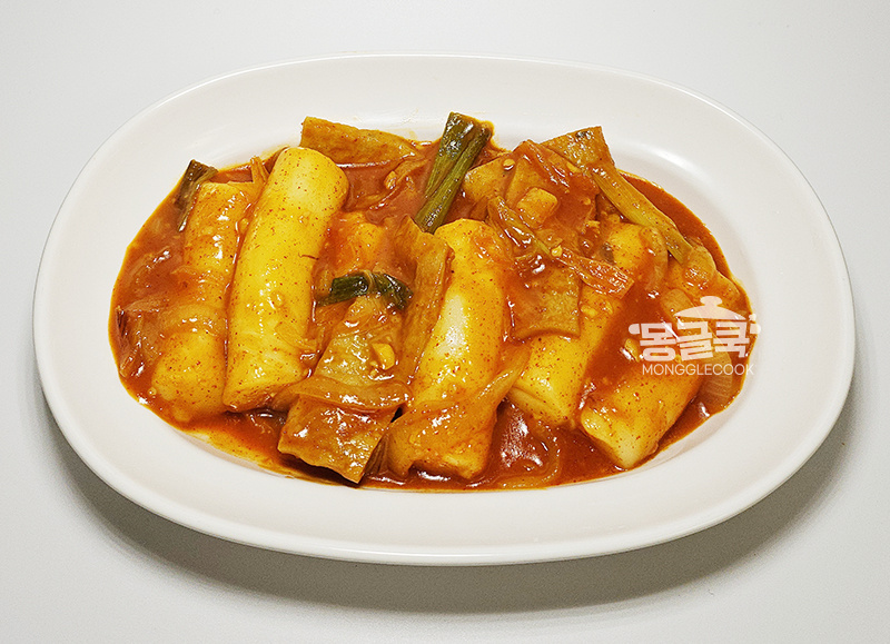 국물이 거의 줄고 떡 사이사이 꾸덕한 양념이 감돌면 불을 꺼주세요.