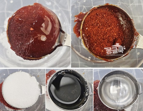 고추장 1큰술, 고춧가루 1/2큰술, 간장 1/2큰술, 설탕 1큰술