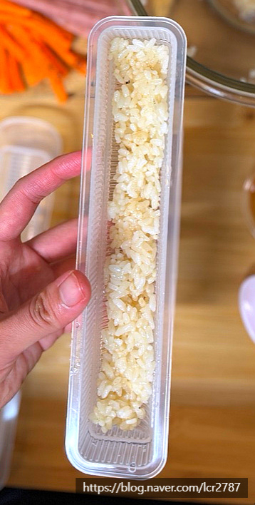 틀에서 꺼낸 밥을 올려요.