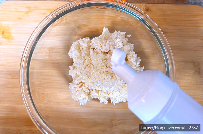 밥에 맛소금 참기름 넣고 잘 섞어주세요.