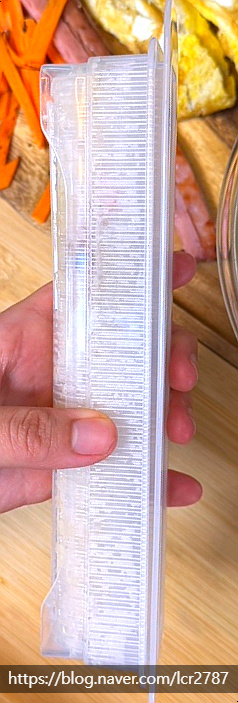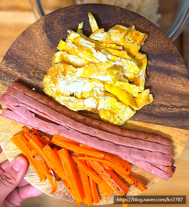 저는 당근채, 계란지단, 햄 준비했어요.