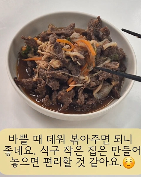 6등분 하면 다른 반찬과 먹으면 둘이 먹기 충분 하고 불고기만 먹으면 1인이 먹기 넉넉해요.