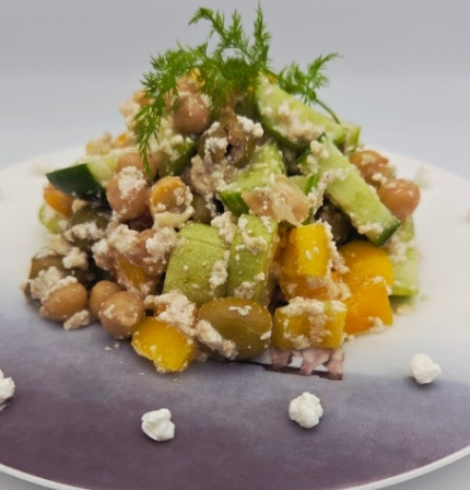 병아리콩으로 만들어 든든하고 고소한 콩 샐러드 식사어떠세요..? 콩이 씹혀 담백하고 단백질 보충도 돕는 칙피지중해샐러드로 영양 보충도 하고 면역력 증진에도 힘써보아요. 똑같은 재료가 아닌 매번 새로운 식재료로 도전하는 샐러드 요리로 색다르고 매력있는 브런치를 드셔보세요.