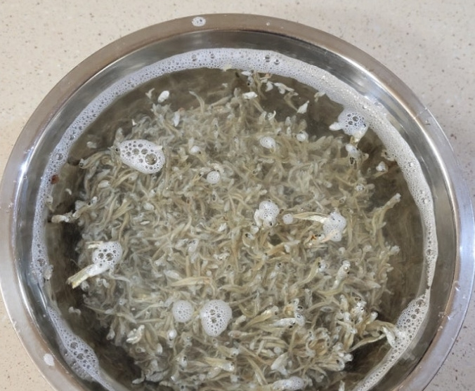 건조 상태 멸치는 물을 많이 흡수하기 때문에~ 수돗물보다는 정수된 물을 사용하는 게 좋아요