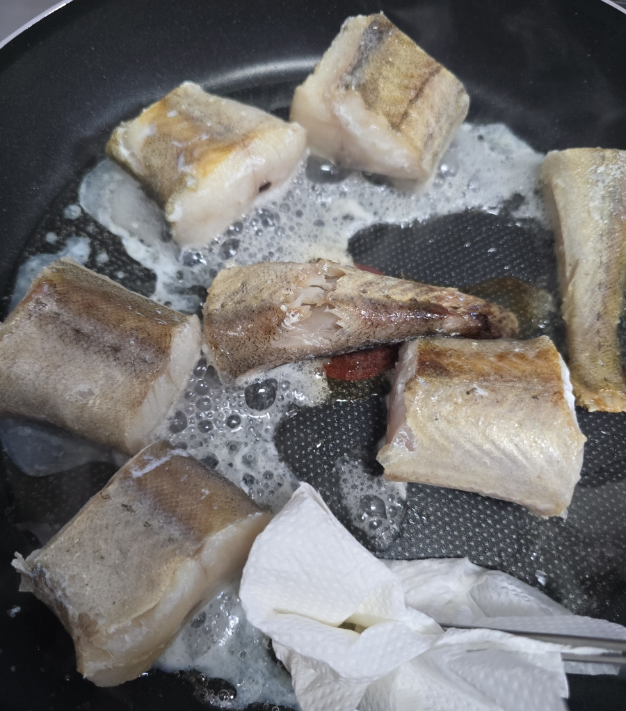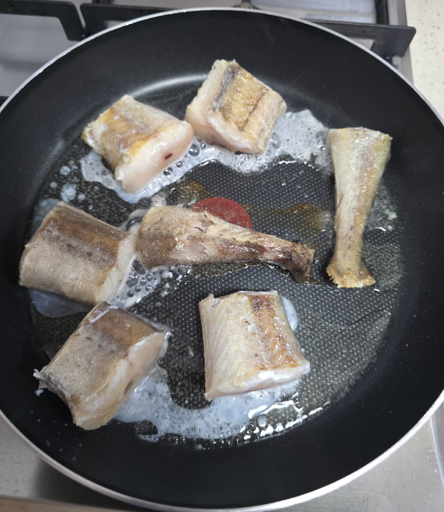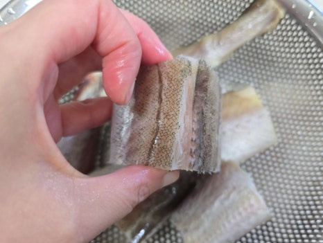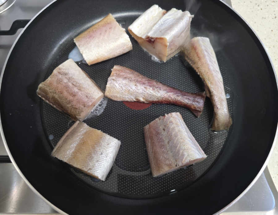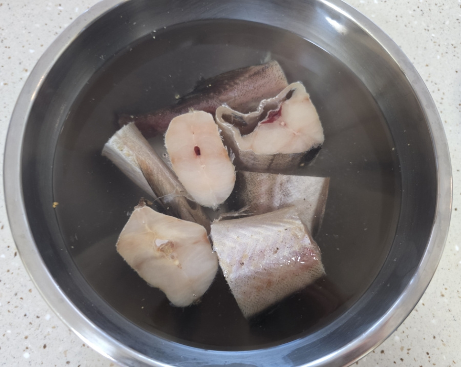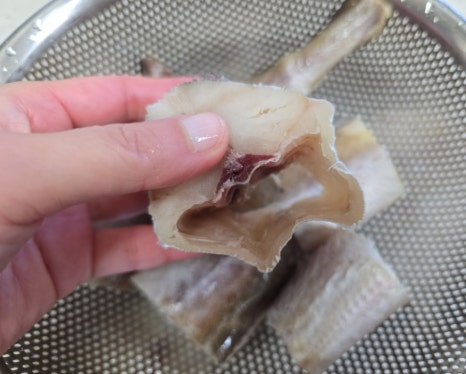 이 과정은 코다리 살이 풀어지는 것을 막고, 쫀득한 식감을 극대화하는 방법이에요.
