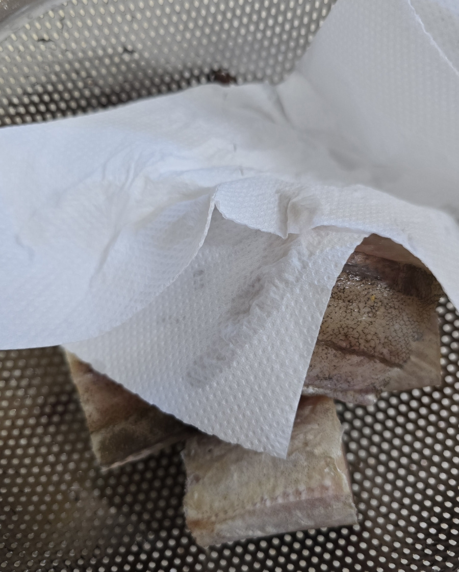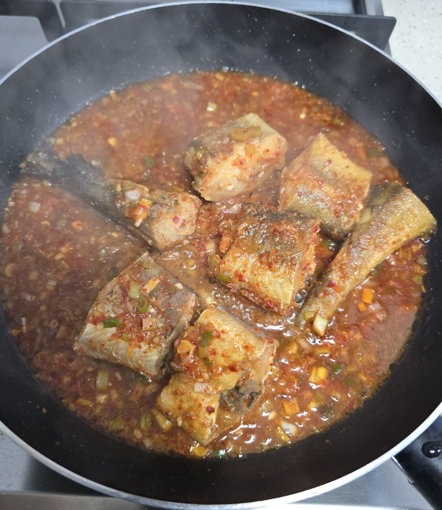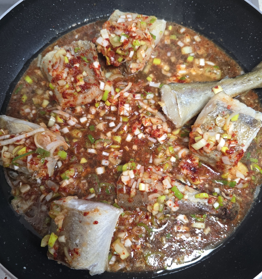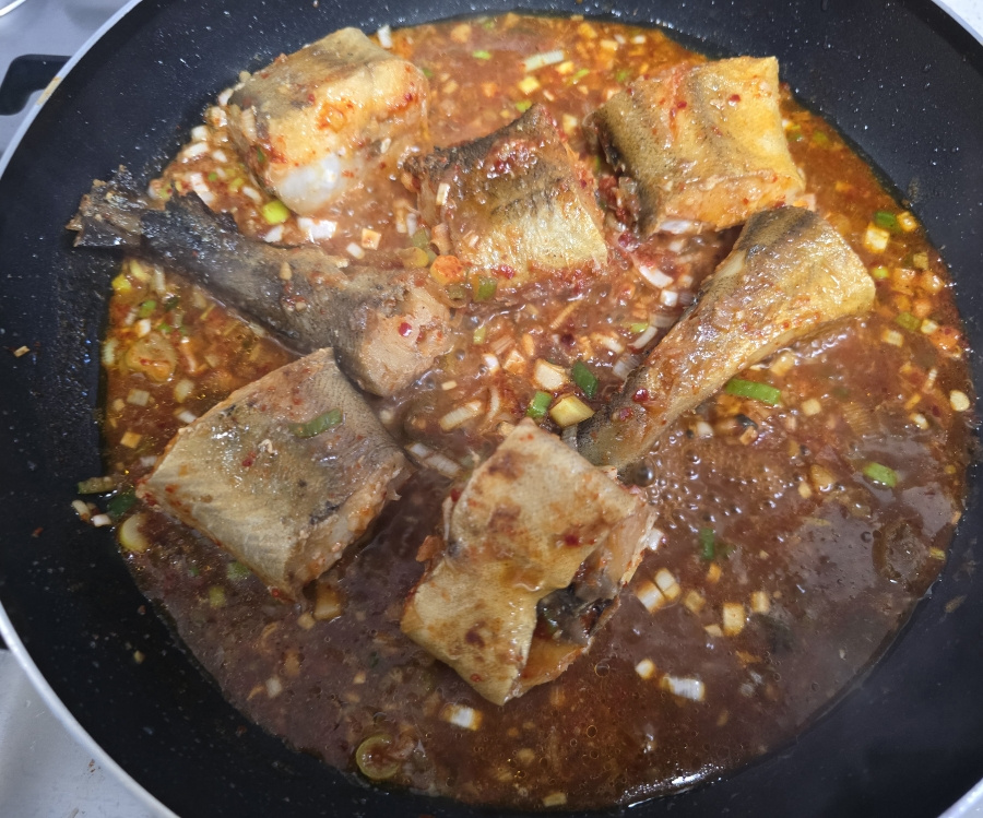 이 과정은 코다리 살이 풀어지는 것을 막고, 쫀득한 식감을 극대화하는 방법이에요.