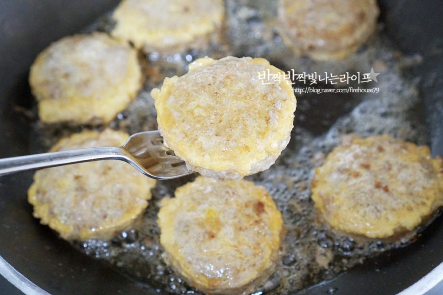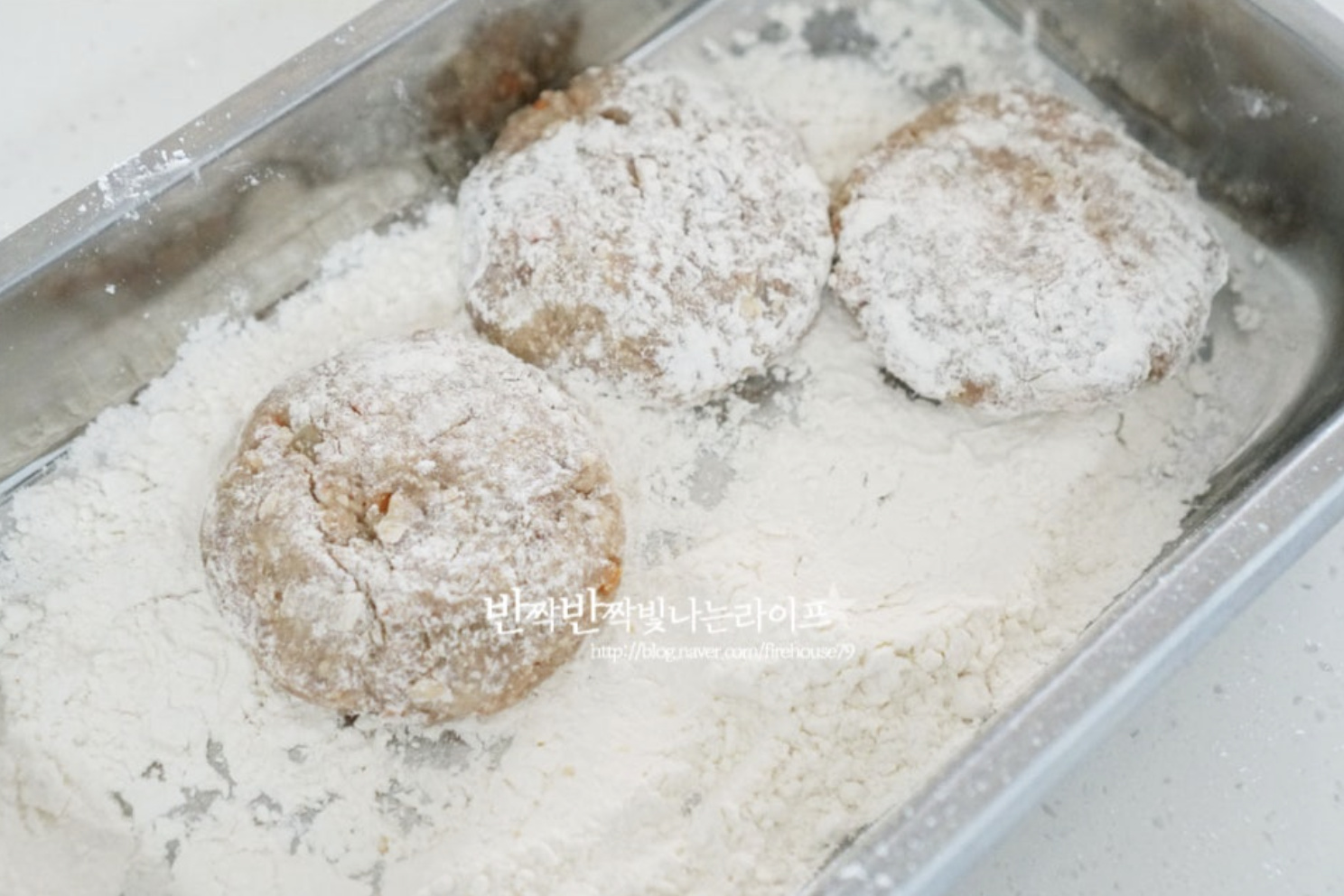 포크를 사용하면 적당량을 뭉치지않게 입혀주기 편합니다.
