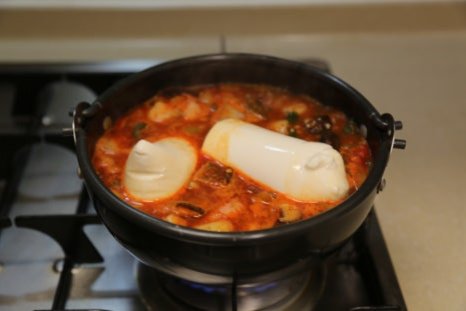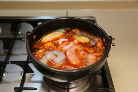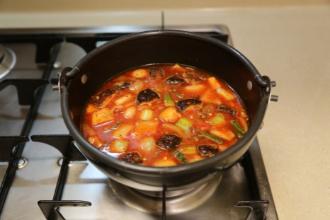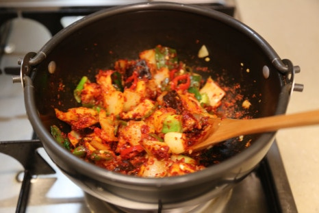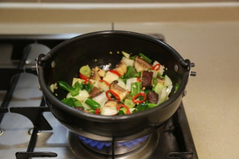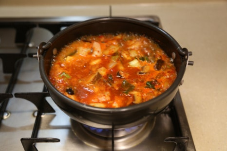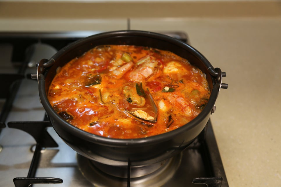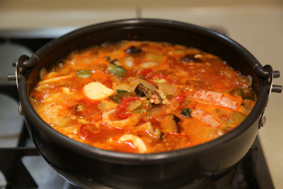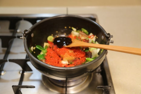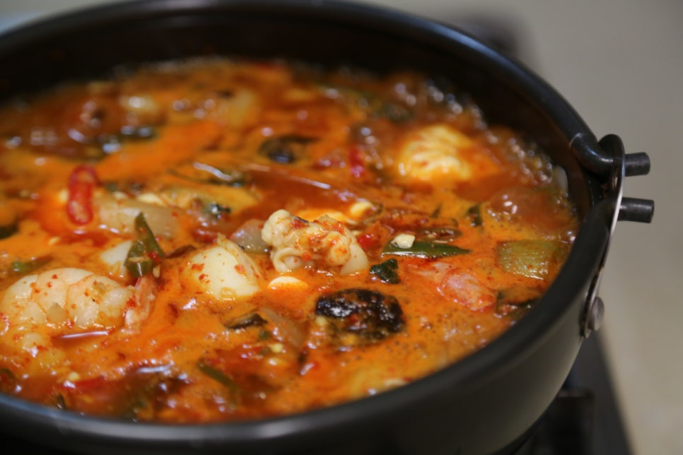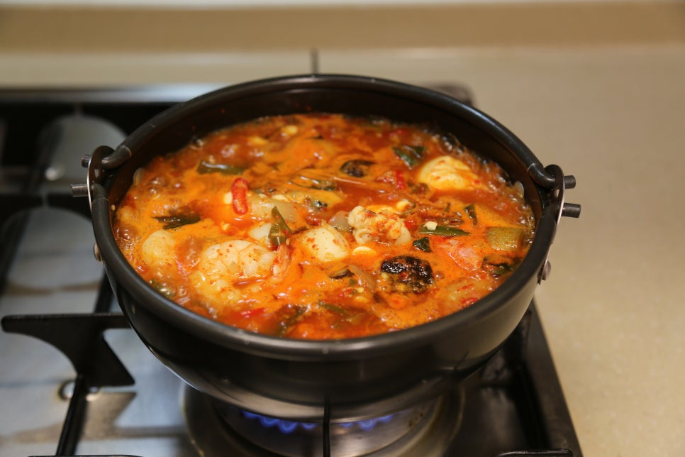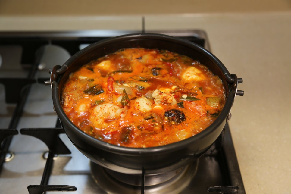 뚝배기가 야채를 볶으면서 달궈진 상태라 불을 중불로 줄이고 양념이 타지않게 볶아준다