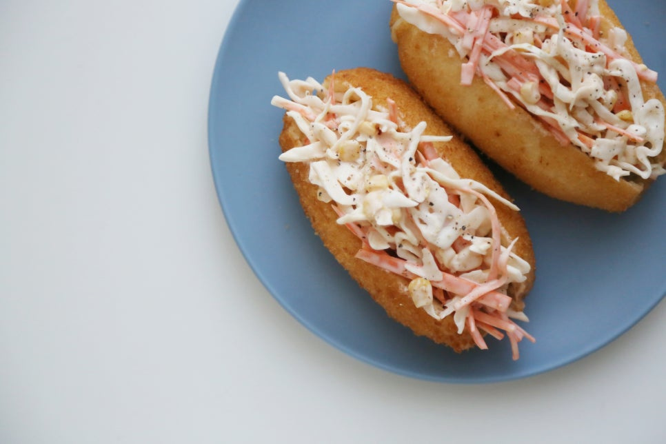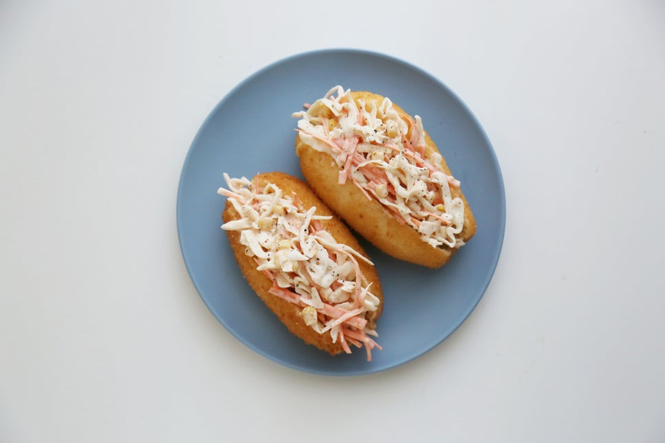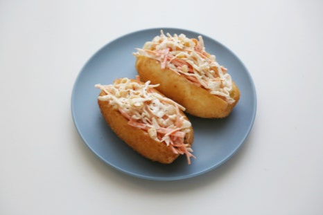 냉동핫도그 2개, 양배추샐러드 넉넉히