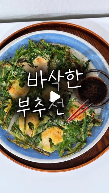 쌀쌀하거나 비 오는 날이면 어김없이 바삭바삭한 전이 먹고 싶더라고요. 그래서 오늘은 실패 없는 바삭한 부추전 만들어 봤어요. 새우도 가득 넣고 바삭한 부추전 전분 까지 넣어서 반죽 제대로 만들었습니다. 오늘 제가 만든 바삭한 부추전 반죽법 대로 반죽 만들고 3배 바삭하게 해주는 킥! 하나만 추가해준다면 누구나 전집 부럽지 않게 바삭하게 부쳐낼수 있습니다.