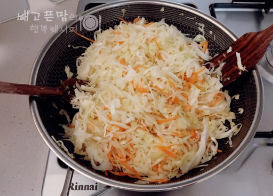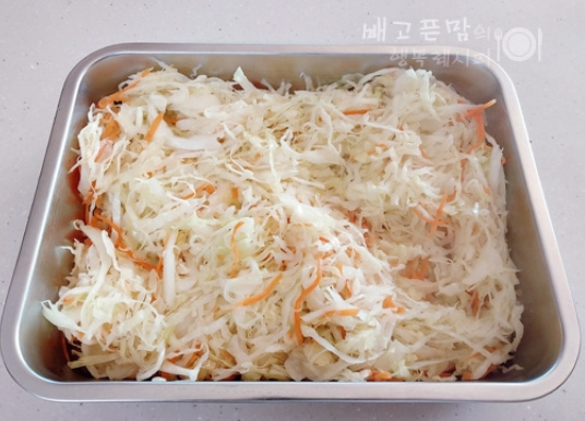 배고프면 바로 꺼내 먹을 수 있게 양배추 반을 곱게 채 썰어 샐러드를 양껏 만들어 두었습니다. 양배추를 소금에 절이지 않고 올리브오일에 식감 살려 살짝 볶고 참치캔 기름을 빼고 만든 참치 소스에 버무려 참치 양배추 샐러드를 만들었습니다. 그냥 먹어 모닝빵이나 식빵 사이에 넣어 샌드위치 만들어 먹어도 맛있는 다이어트 참치 양배추 샐러드입니다.