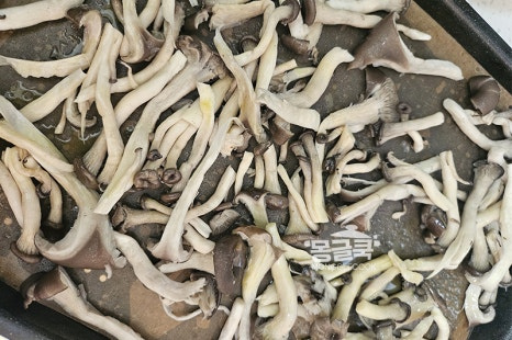 굽는 중간에 물기가 생기면 키친타월로 닦아내고 온도를 200℃로 살짝 올려가며 마무리해주면 더욱 쫄깃해요. 단, 버섯이 탈 수 있으니 꼭 중간중간 확인해주세요.