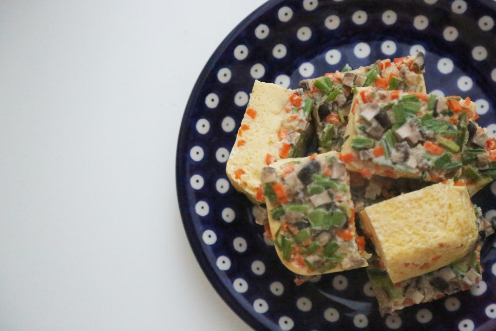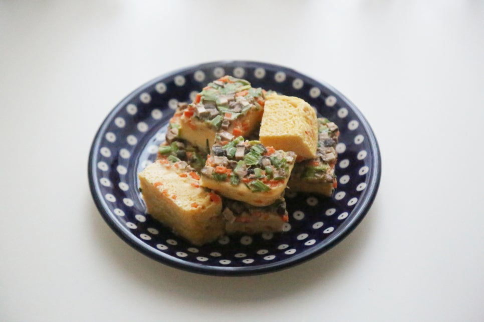 계란 4개, 다진 마늘 0.5스푼, 새우젓 1스푼, 뜨거운물 100ml, 표고버섯 1개, 당근 1/4개, 부추 6줄