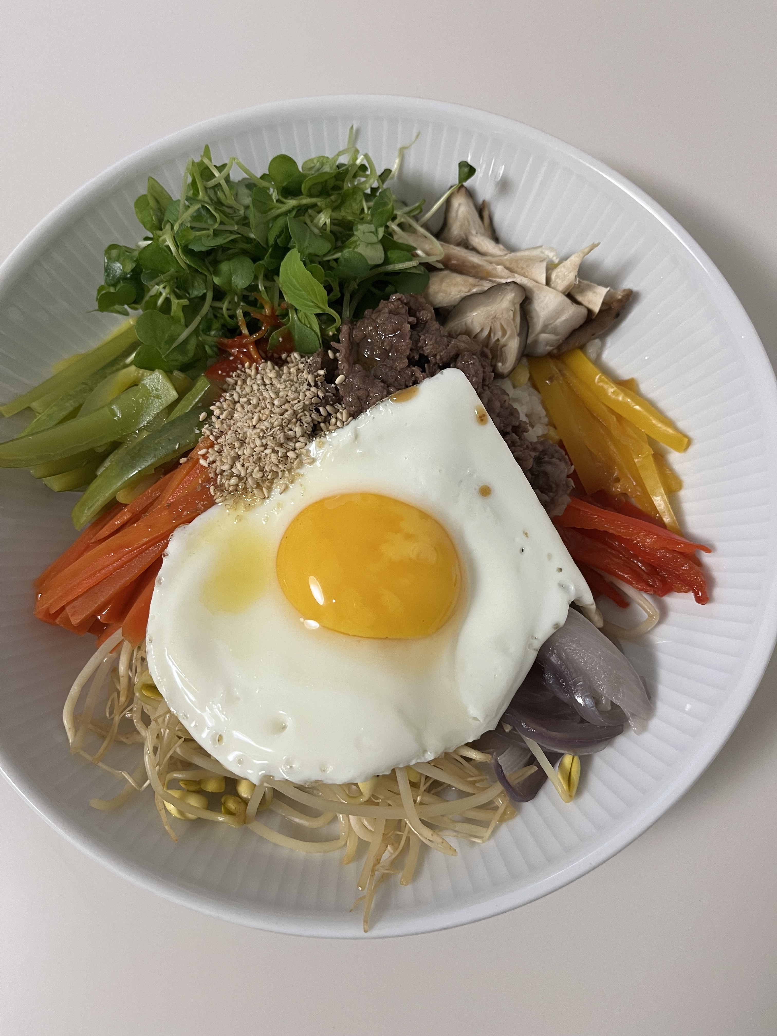 보통 비빔밥할때 나물을 볶거나 무침을 해서 만들죠. 그럼 시간도 많이 걸리고 오일과 양념이 많이 들어가 칼로리도 많이 높다고 하더라구요. 그래서 야채들을 간단하게 찜솥에 잠깐 익혀 담백한 야채찜 비빔밥을 만들었어요. 저속노화식, 다이어트에도 좋은 야채찜 비빔밥 만들어 보세요.