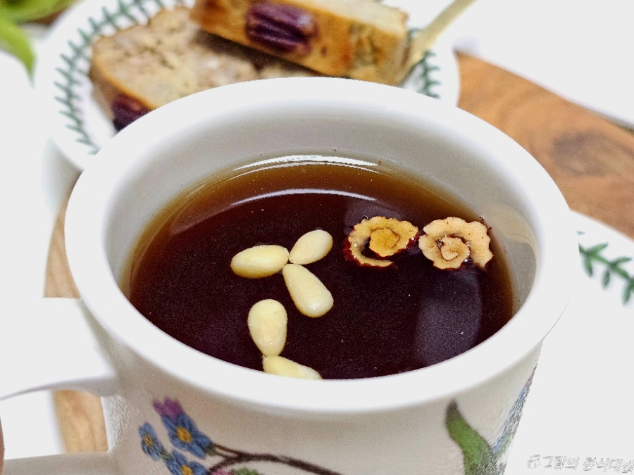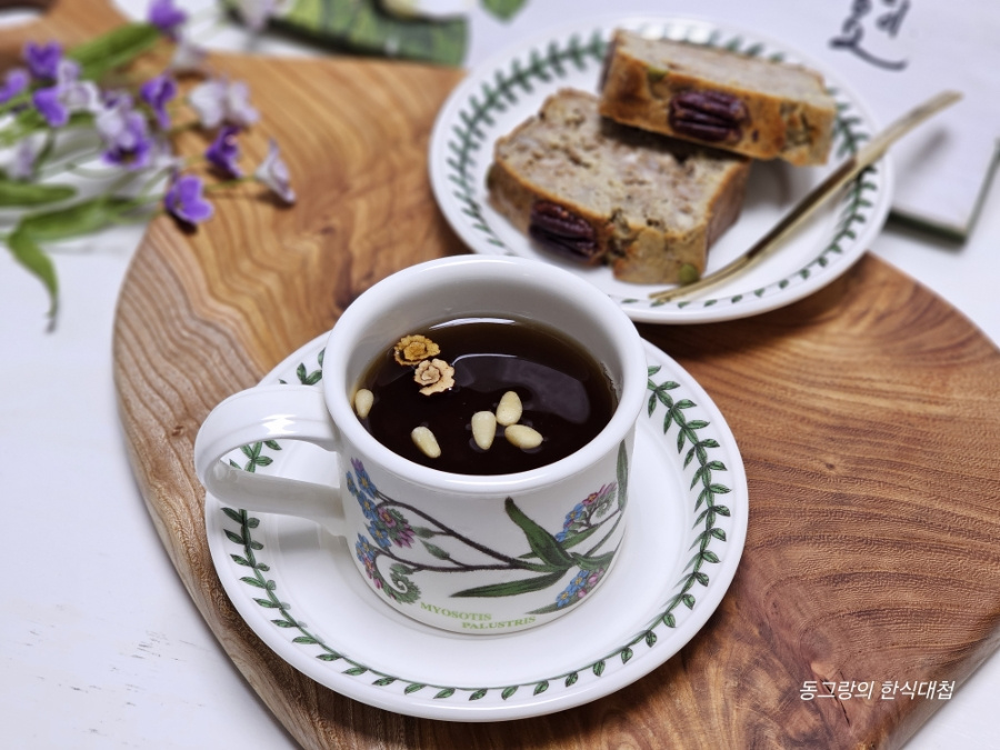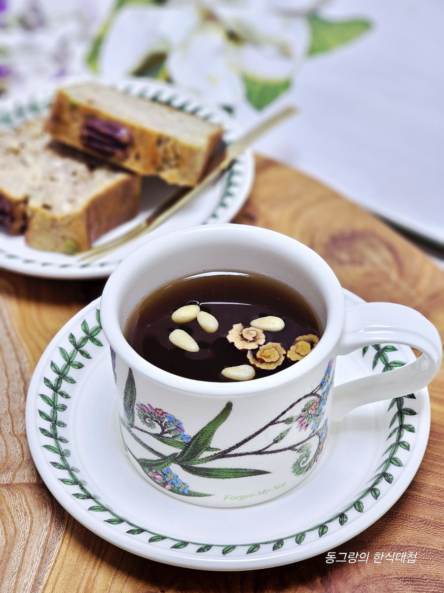 저는 짙은 색깔을 내주기 위해 흑설탕을 사용했는데 백설탕 황설탕 알롤로스도 괜찮고 마스코바도라는 비정제당도 된답니다. 이때 단맛은 식성에 따라 가감합니다.