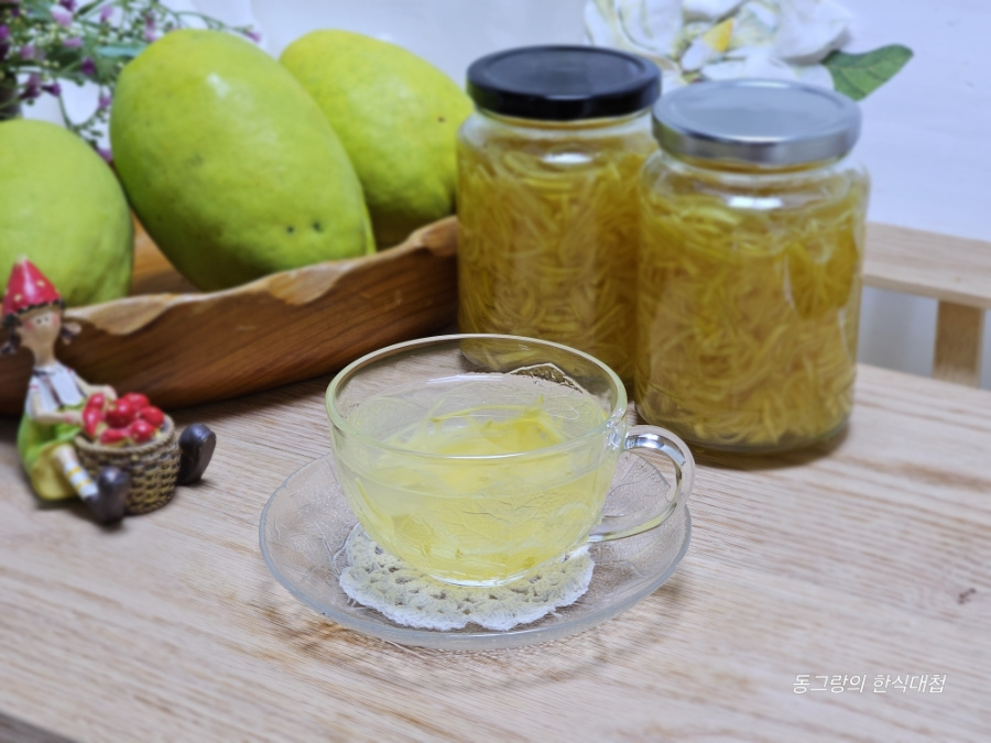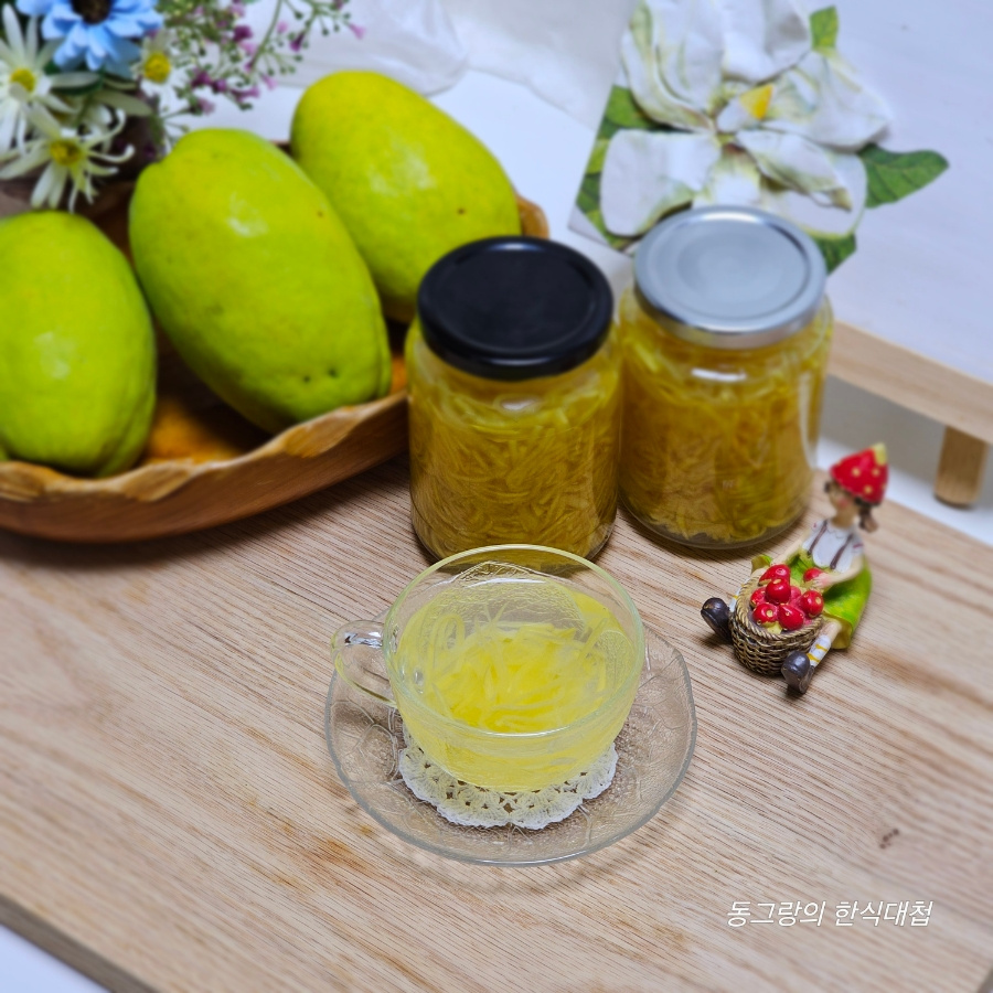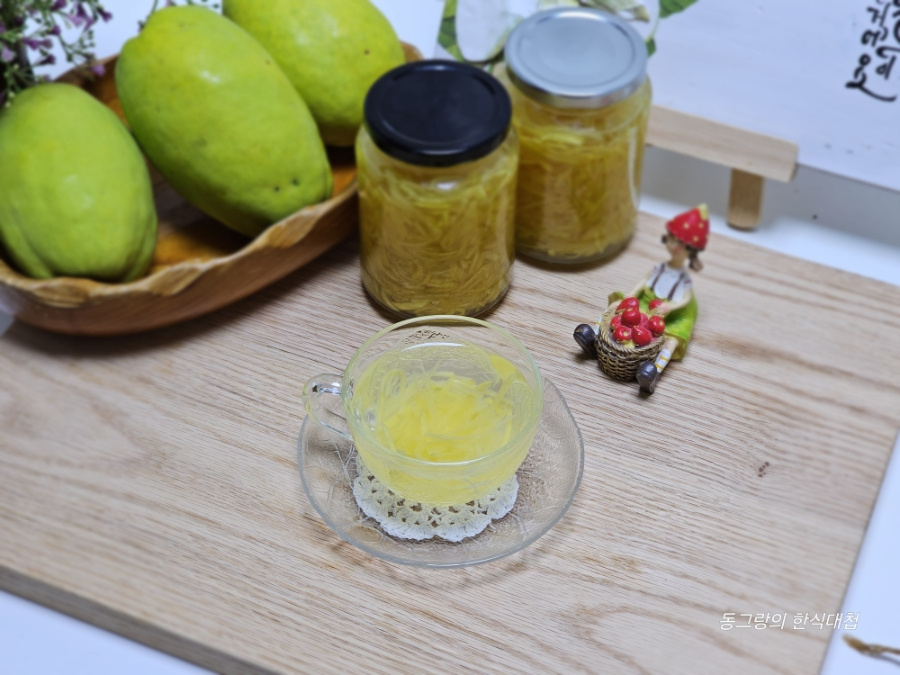 청은 주로 재료와 설탕의 비율을 1 대 1, 동량으로 하는데요. 다른 과일에 비해 수분이 적어서 설탕만 넣지 않고 올리고당을 섞었어요.