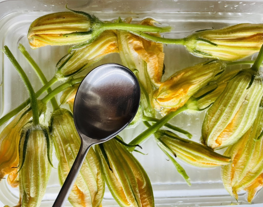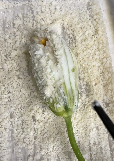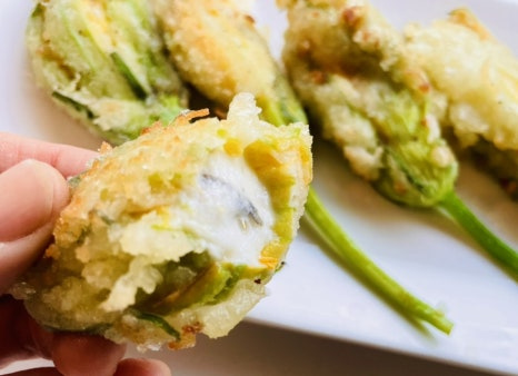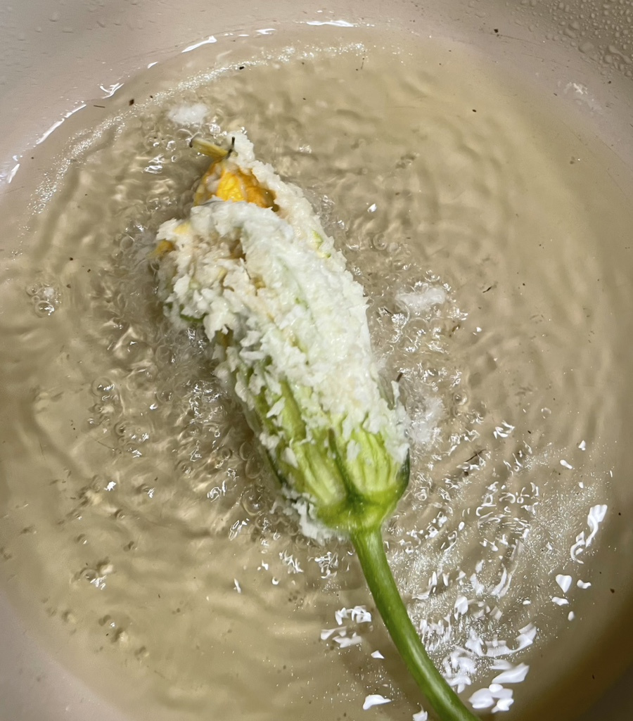 오늘은 호박꽃 튀김을 이태리식으로 안에 리코타치즈와 홈메이드 앤초비를 넣고 튀김옷을 입혀 튀겼어요.