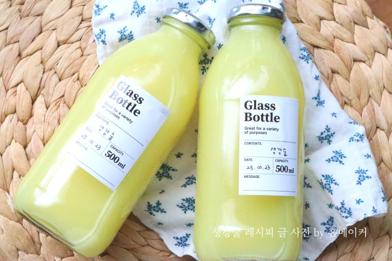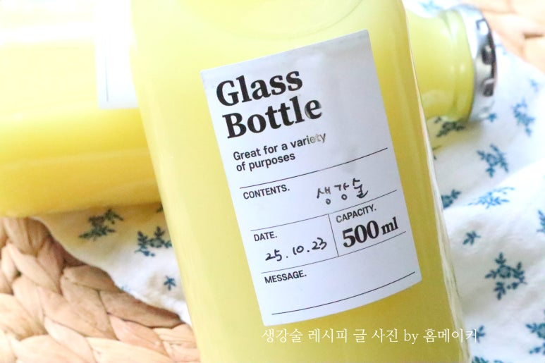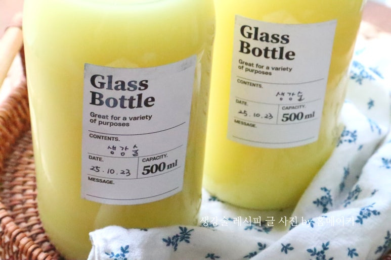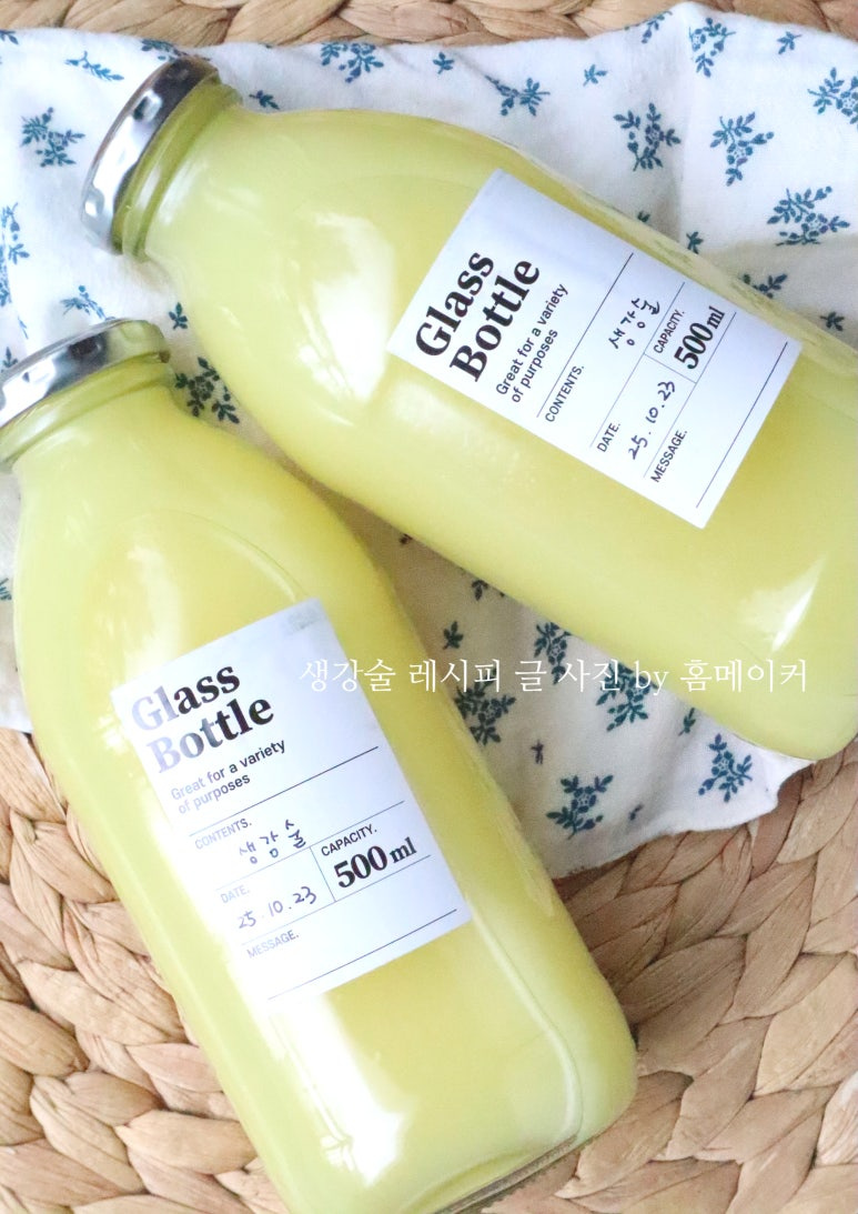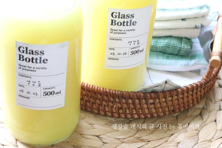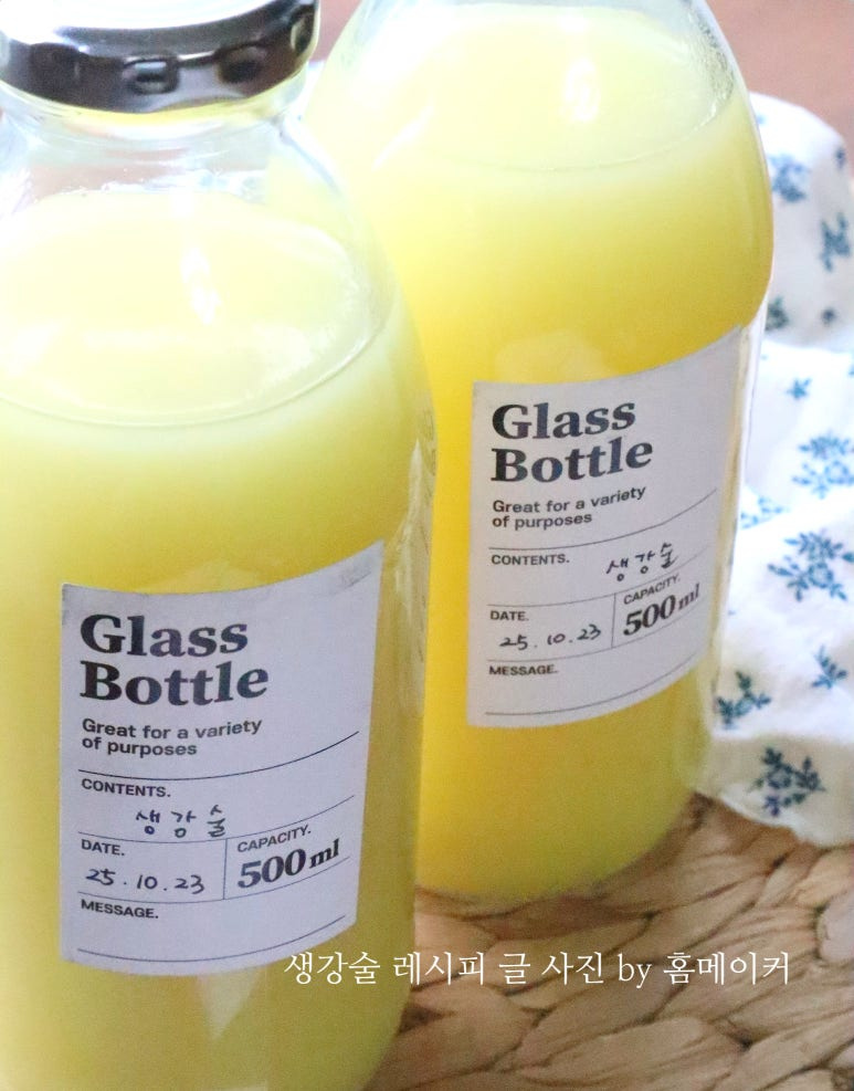 햇생강 380 g (다듬은 상태), 청주 700 ml , 500ml 유리병 2 개
