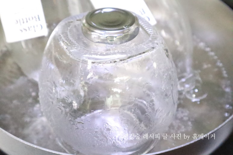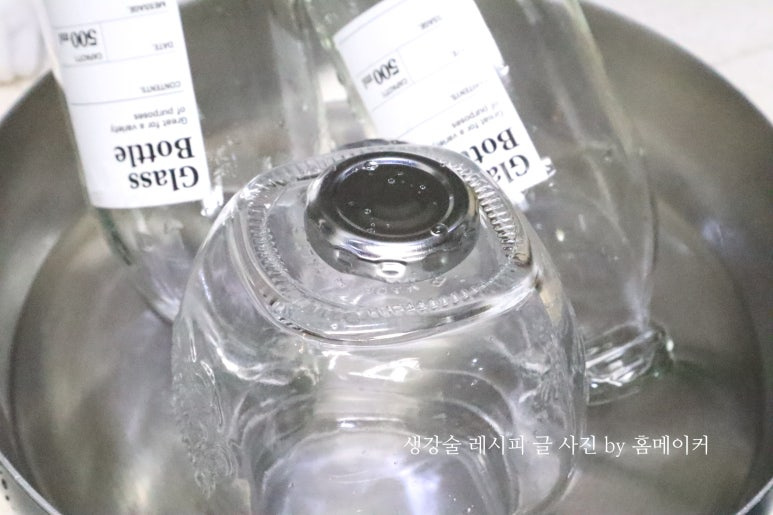 생강 술을 만들기에 앞서 가장 먼저 해야 할 일은 생강 술을 담아둘 유리병을 소독하는 일이에요.