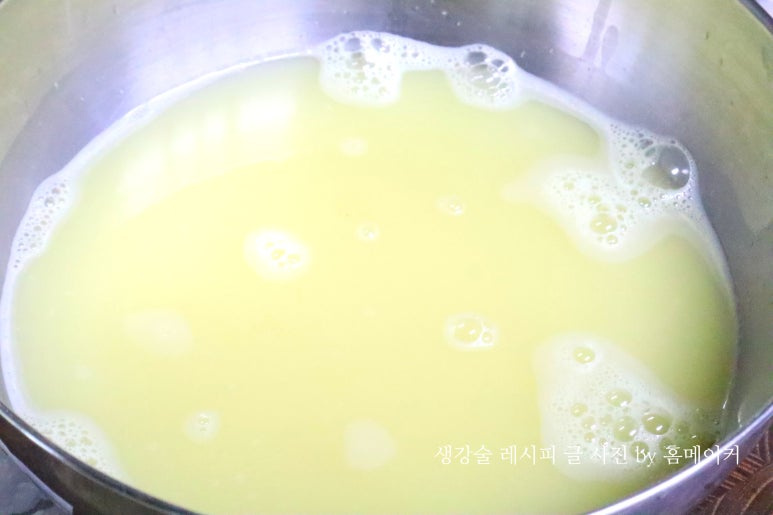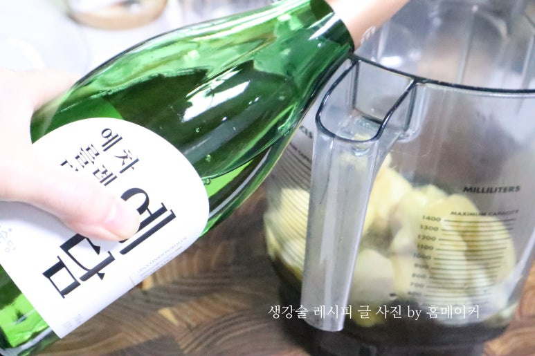 저는 생강과 술의 비율을 약 1:2 정도로 잡아주었는데 생강 술의 비율은 개인의 취향에 따라 조금 조절해 주셔도 좋습니다.^^