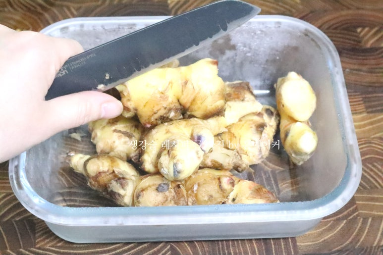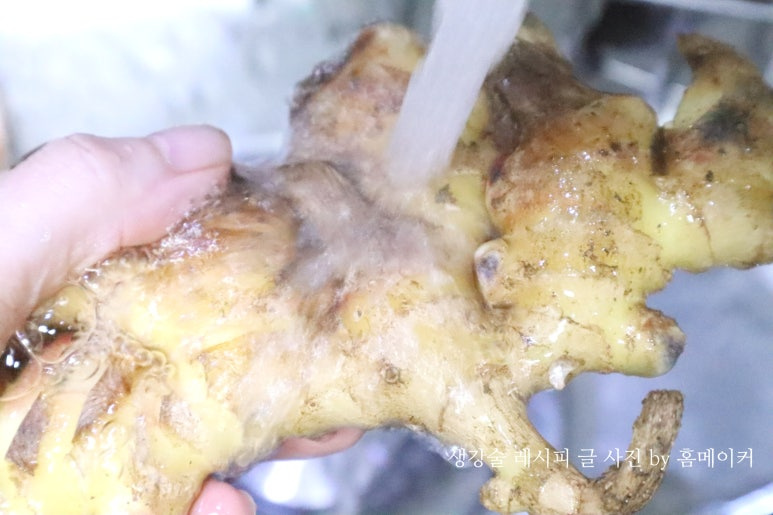 먼저 생강에 묻은 모래를 흐르는 물에 깨끗이 씻어 주세요.