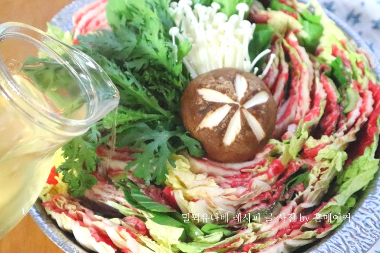 밀푀유나베에 사용하고 남는 육수는 냉장고에 보관해서 다른 요리에 활용하시면 됩니다.^^