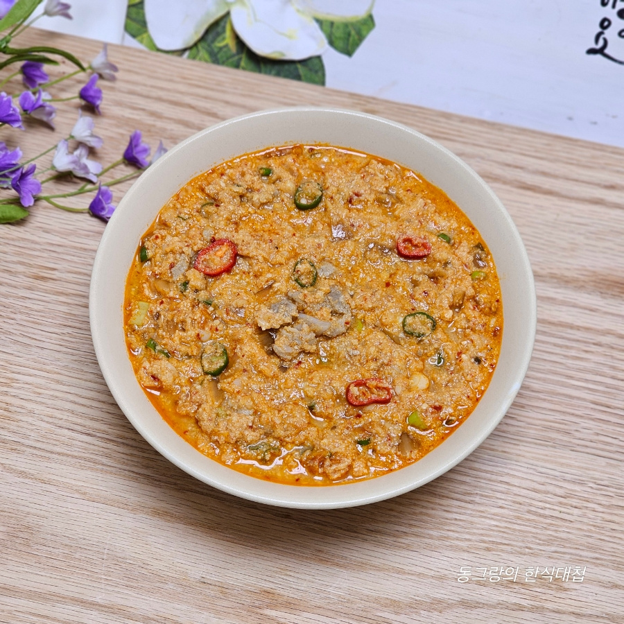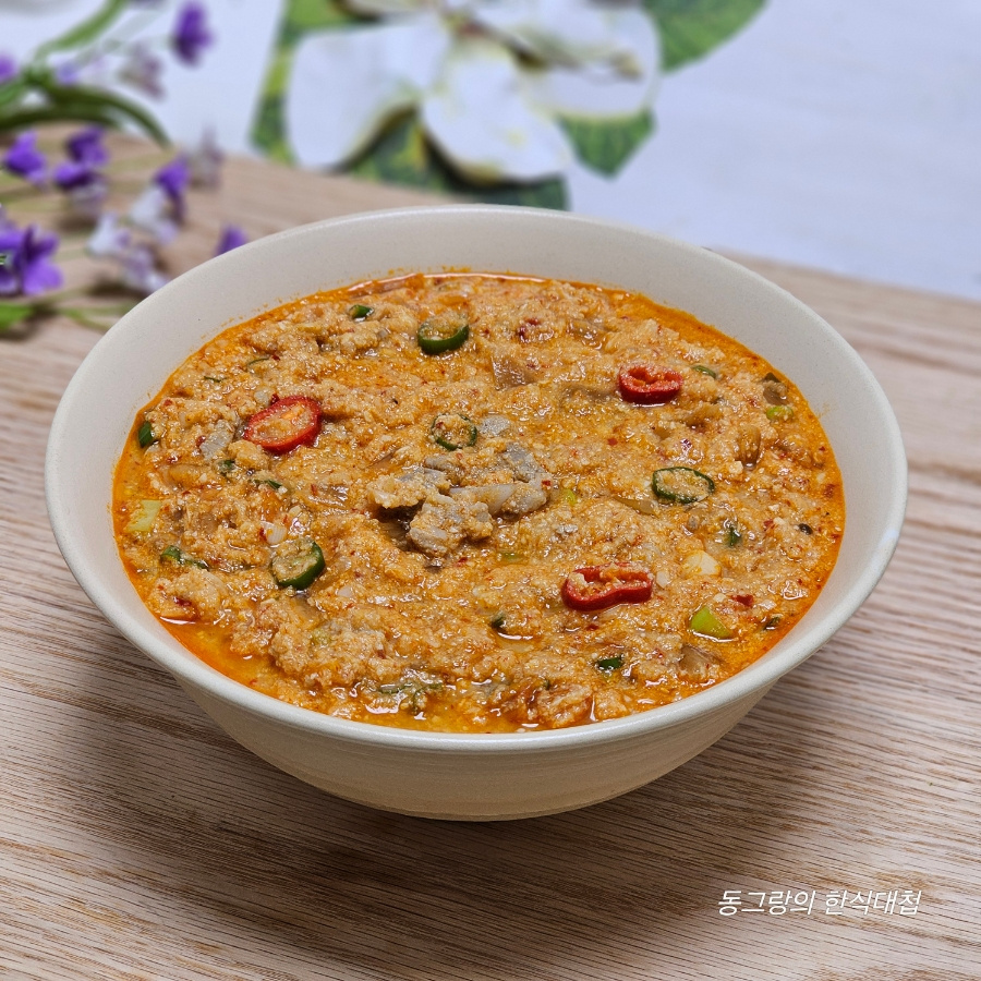 비지찌개는 국처럼 물을 많이 부어 끓이는 게 아니라 물기 없이 빡빡하게 끓이는 거라서 약불로 줄이고 끓여야 여기저기 튀지 않는답니다.
