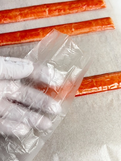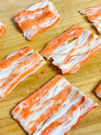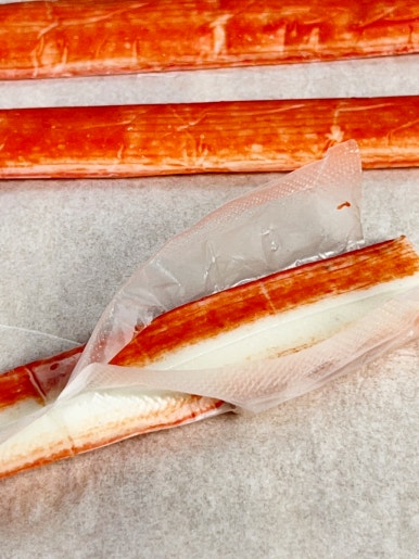 맛살이나 크래미는 껍질을 벗겨 사용해요.