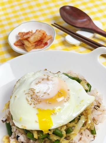 양배추는 채 썰어 놓은 것이 있어 사용했어요. 넉넉하게 있다면 충분히 넣으셔도 좋아요. 밥 양은 줄이고 야채를 많이 넣으면 다이어트 메뉴로 훌륭합니다.