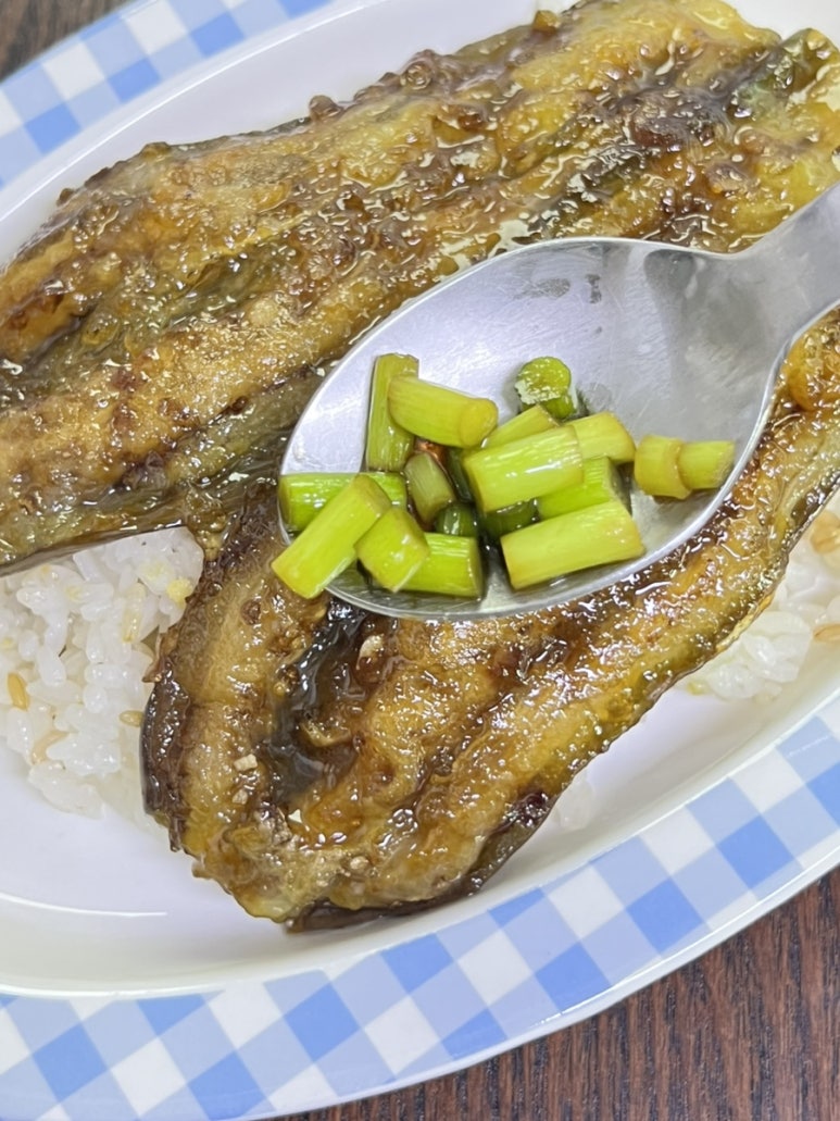 밥 위에 올리고 마늘종을 올려 주세요. 초록색이 없던 입맛을 살려 줍니다.
