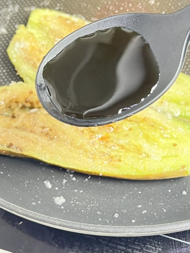 노릇하게 굽고, 미리 준비해 두었던 양념을 올려 조려 주세요. 슬라이스 마늘, 양파가 있다면 추가해도 좋아요.