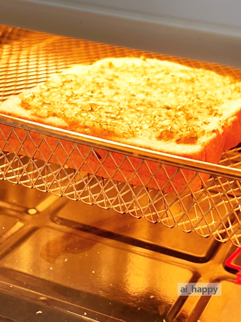 노릇노릇 익어가는 모습이 먹음직스럽습니다. 혹시 타지 않는지 중간에 확인해 주세요.